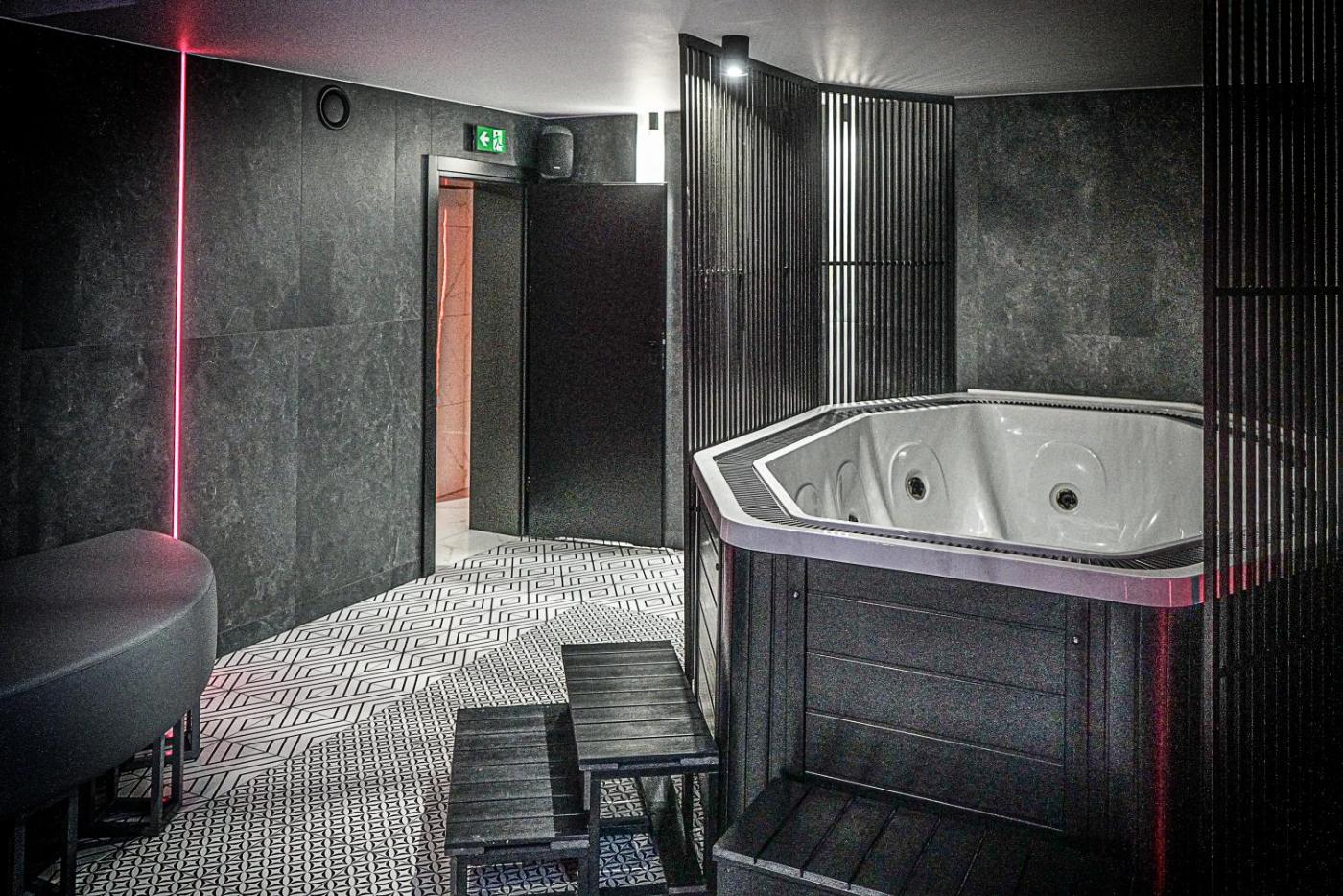 Studio z wanną z hydromasażem. This studios special features are the hot tub and the spa bath. The spacious studio features a private bathroom, air conditioning, a private entrance, as well as a seating area with a flat-screen TV. The studio provides a tea and coffee maker, a wardrobe, a sofa, heating, as well as a TV. The unit offers 1 bed. Studio - 2 osobowy. Powierzchnia pokoju ok.: 55 mkw. ;