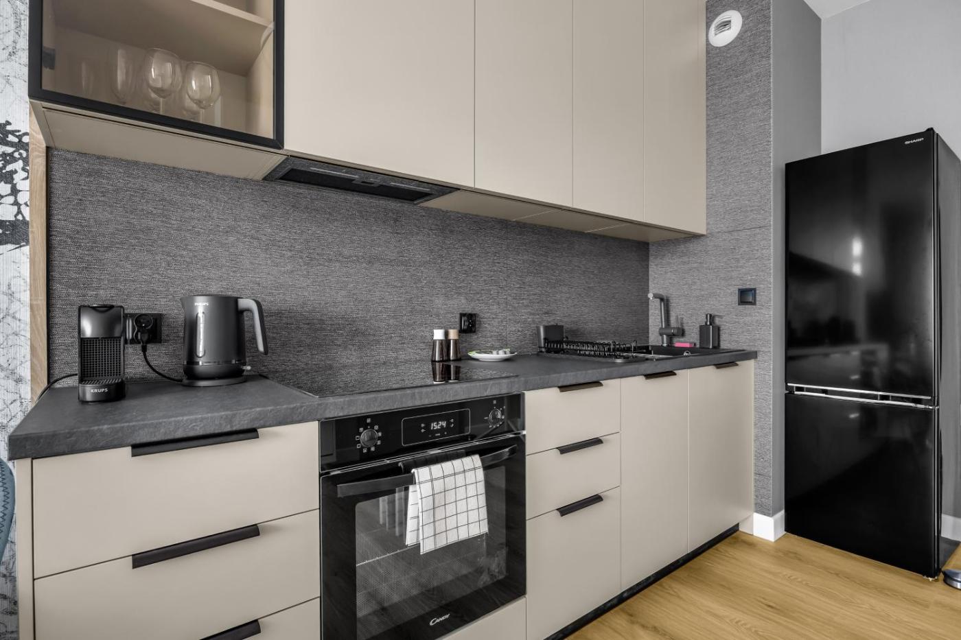 Apartament z 1 sypialnią. Boasting a private entrance, this air-conditioned apartment features 1 living room, 1 separate bedroom and 1 bathroom with a shower and a hairdryer. The well-equipped kitchen features a stovetop, a refrigerator, a dishwasher and kitchenware. This apartment has a washing machine, a coffee machine, flat-screen TV with streaming services, as well as chocolate for guests. The unit has 2 beds. Apartament - 4 osobowy. Powierzchnia pokoju ok.: 38 mkw.